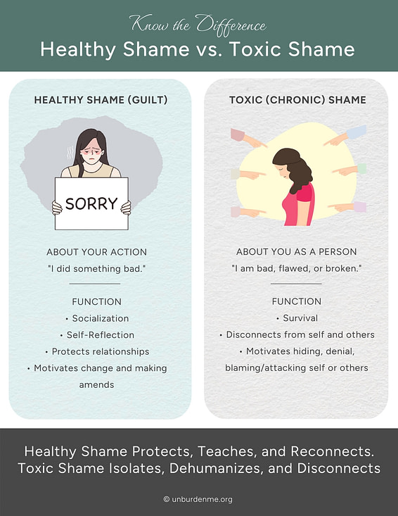 In short, the appropriate use of shame in the above context is healthy. However, when shame is used as a tool to humiliate, oppressed, and punished excessively without any explanation or repair, it can turn into pervasive toxic shame.